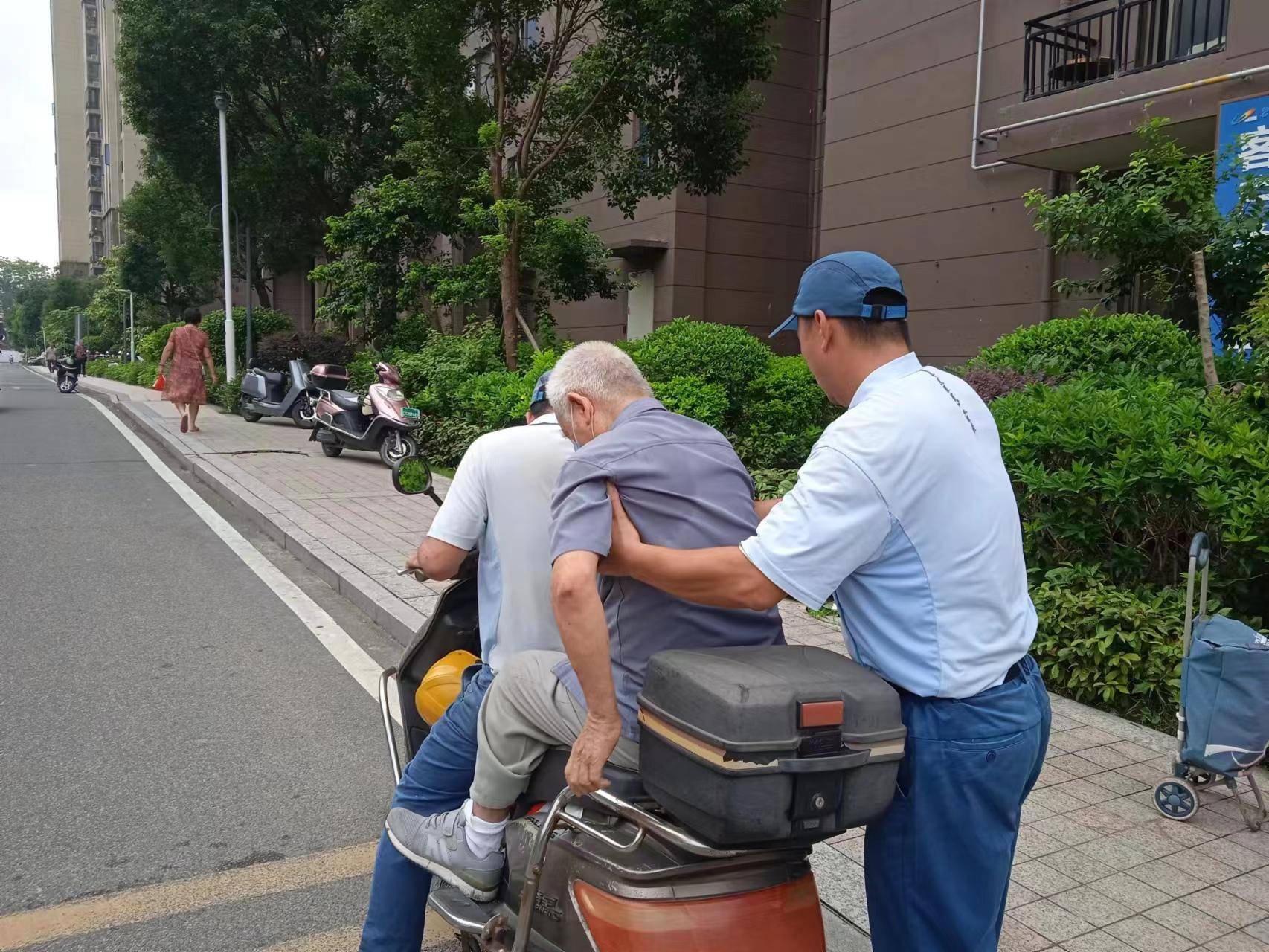 同时,监控室物管员通过监控视频同时了解到情况,立马联系了物管队长及2名巡逻岗队员过去协助。在确认长者无大碍后,便开摩托车载长者回家,将情况与其家人说明清楚,长者和家属都对物管团队的及时相助表示感激。