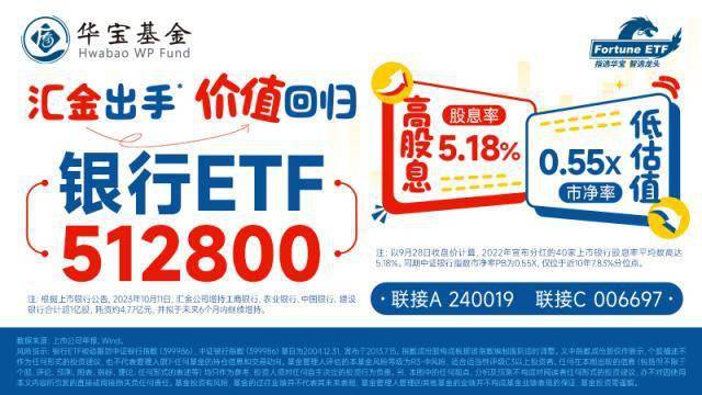看好银行板块估值重塑行情的投资者可以重点关注银行ETF(512800)。公开资料显示,银行ETF(512800)跟踪中证银行指数,成份股囊括A股市场42只上市银行,近三成仓位布局工商银行、中国银行、邮储银行等国有大行,捕捉“中特估”主题机会;约七成仓位聚焦招商银行、兴业银行、西安银行等高成长性股份行、城商行、农商行,是分享银行板块行情的高效投资工具。