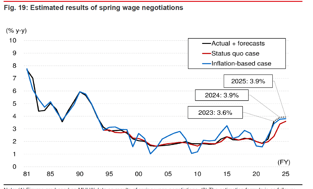 我们认为在确定2024年“春斗”工资将持续上涨经济将持续复苏的趋势后,2024年和 2025年的春季工资谈判将使工资涨幅(包括基于年资的工资涨幅)达到3.9%,高于2023年3.6%的涨幅。