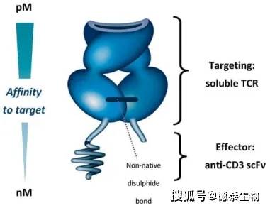 KIMMTRAK是首个获准用于实体瘤治疗的T细胞衔接器,这类新型的T细胞定向双特异性融合蛋白,利用经过设计的高亲和力TCR靶向肿瘤细胞表面以肽-HLA复合物的形式存在的靶点抗原。