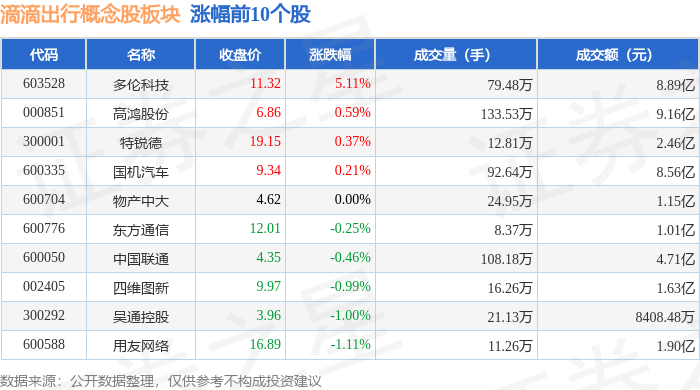 北向资金方面,当日滴滴出行概念股板块北向资金持股市值为165.79亿元,减持0.45亿元。其中增持最多的是中科创达,增持了0.27亿元。减持持最多的是中国联通,减持了0.26亿元。滴滴出行概念股板块北向资金持股变动明细见下表: