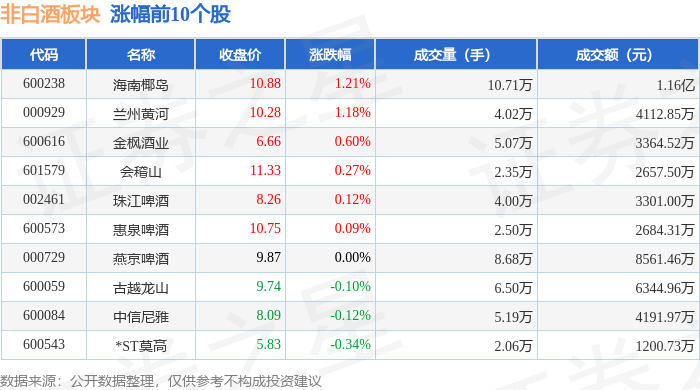 北向资金方面,当日非白酒板块北向资金持股市值为59.62亿元,增持20.96万元。其中增持最多的是重庆啤酒,增持了341.68万元。减持持最多的是青岛啤酒,减持了553.62万元。非白酒板块北向资金持股变动明细见下表: