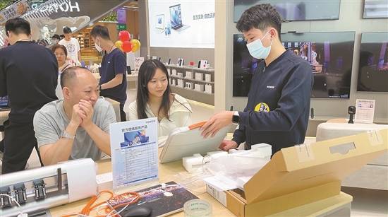 广州荣耀荔湾区某直营店内,消费者正在购买产品 |