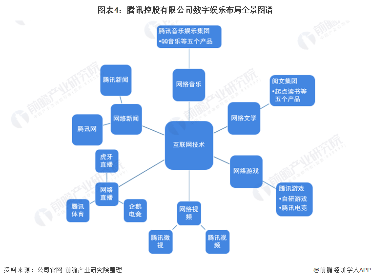 前瞻认为,数字娱乐是由文化创意结合信息技术形成的产业形态,这种产业形态主要局限于为居民生活带来娱乐的领域部分,主要包括网络音乐、网络文学、网络游戏、网络视频、网络直播和网络新闻六大类,其中网络视频包括长、中、短视频。在各个数字娱乐领域,腾讯基本都有相关涉及业务,详细情况如下: