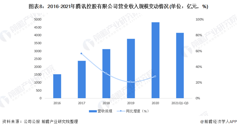 腾讯每年实现营收主体主要为互联网核心产业囊括内容,其非核心产业营收占比不超过5%,因此前瞻在此衡量公司经营业绩时采用公司整体业绩表现,不按照本文互联网核心产业定义进行营收情况剔除。