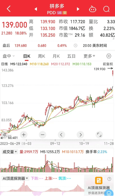 这几天,拼多多发布了2023年第三季度业绩报告,拼多多实现营业收入688.4亿元。财报一发,拼多多美股开盘暴涨18%!!!