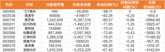 同期,北向资金大比例减仓个股名单中*ST美尚变动比例最高,美诺华、黑芝麻、杭州热电、美利信、产业信息、仕净科技等变动比靠前。