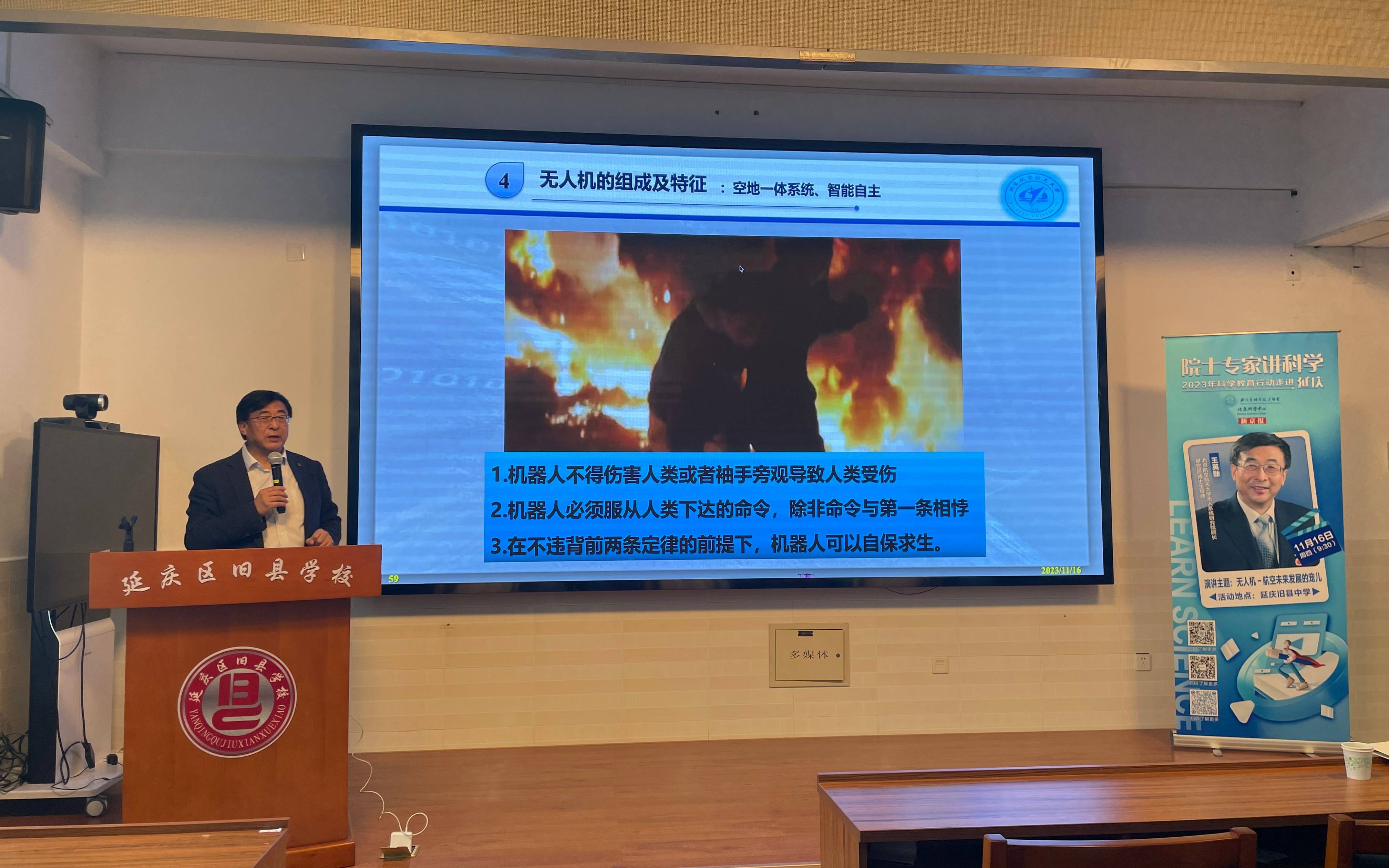 在旧县学校,北京航空航天大学无人系统研究院院长、博士生导师王英勋跟同学们分享了无人机的相关知识。