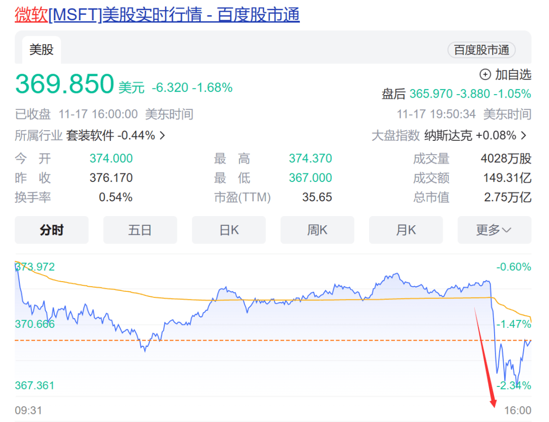 受此消息影响,OpenAI的最大外部投资人微软微盘直线跳水,一度跌超2%,截至收盘仍然下跌1.68%。