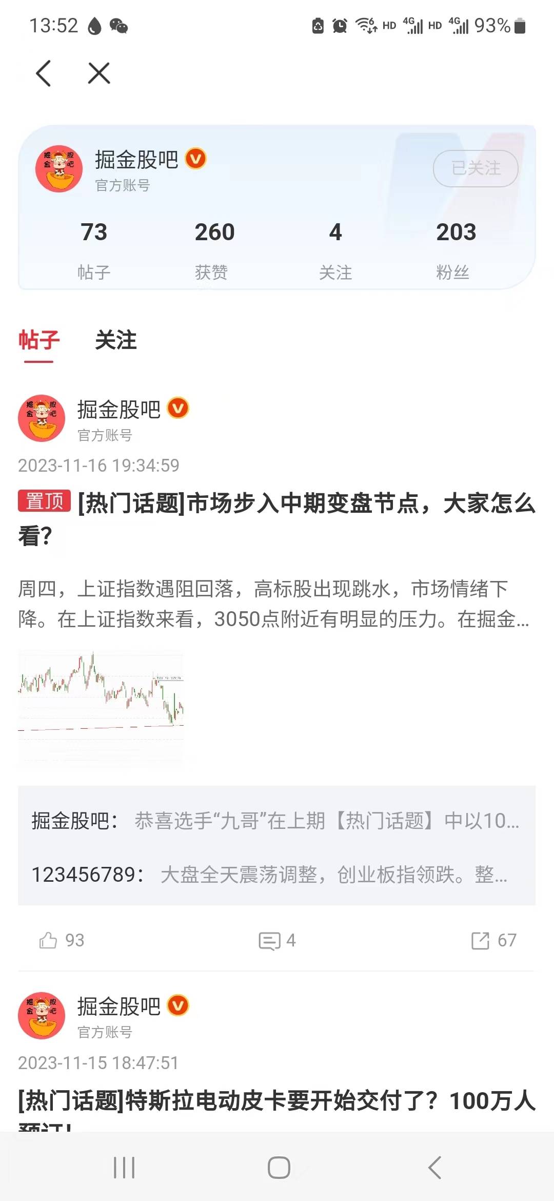 在掘金股吧中,除了热门话题受到很多粉丝的点赞支持,一些专业股民也发布了很有水平的帖子,如“陈SIR”和“A股股侠”,还有“火山君”认为大盘即将大变盘。