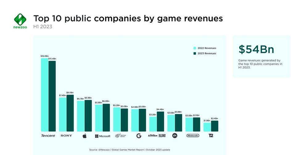 报告还指出,若按公司细分,腾讯在所有平台的服务类游戏中维持领先地位,索尼和苹果分别位于第二名、第三名,微软居于第四。