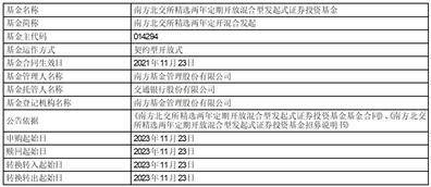 1、本公告仅对本基金开放申购、赎回和转换业务的有关事项予以说明。投资人欲了解本基金的详细情况,请仔细阅读《南方北交所精选两年定期开放混合型发起式证券投资基金基金合同》和《南方北交所精选两年定期开放混合型发起式证券投资基金招募说明书》。