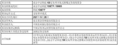 (三)投资者欲了解本基金的详细情况,请认真阅读《南方中证科技100交易型开放式指数证券投资基金基金合同》和《南方中证科技100交易型开放式指数证券投资基金招募说明书》。投资者可访问本基金管理人网站(www.nffund.com)或拨打客户服务电话(400-889-8899)咨询相关情况。