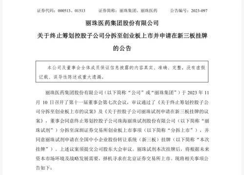 近期,老牌药企丽珠集团宣布,终止筹划控股子公司丽珠试剂分拆至创业板上市,并申请在新三板挂牌。其还表示,本次挂牌后将根据未来资本市场环境及战略发展需要,择机寻求在北京证券交易所(下称“北交所”)上市。