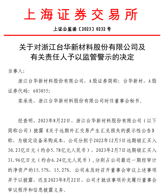 台华新材:信披违规被予以监管警示