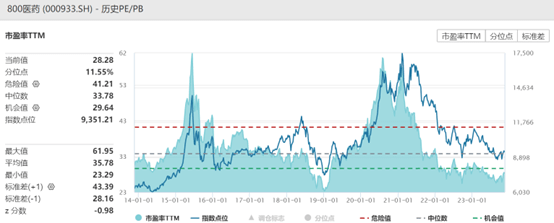 从估值层面来看,医药ETF(159929)跟踪的中证医药卫生指数最新市盈率(PE-TTM)仅28.28倍,处于近10年11.55%的分位,即估值低于近10年88%以上的时间,处于历史低位。