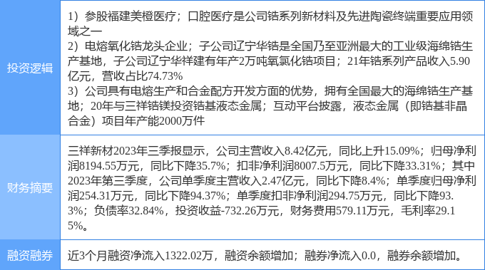 该股为有色 · 锆,液态金属,口腔概念热股,当日有色 · 锆概念上涨3.27%,液态金属概念上涨3.25%,口腔概念上涨2.64%。
